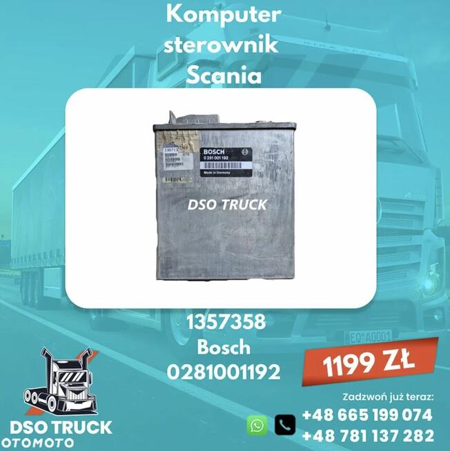 OFERUJĘ Komputer sterownik Scania 1357358 Bosch 0281001192 cena 1199 zł netto Oferujemy wiele części do ...